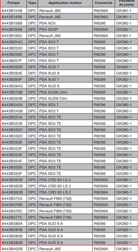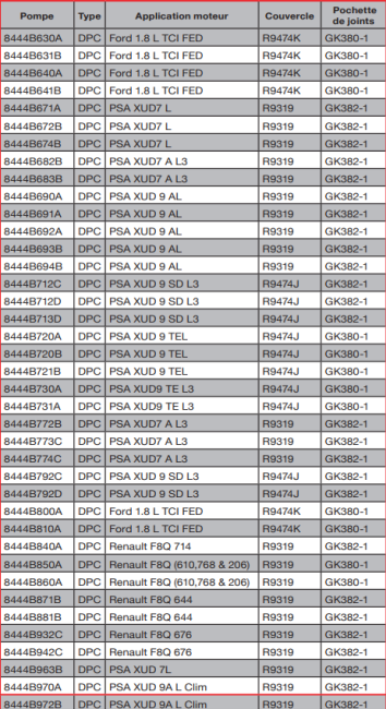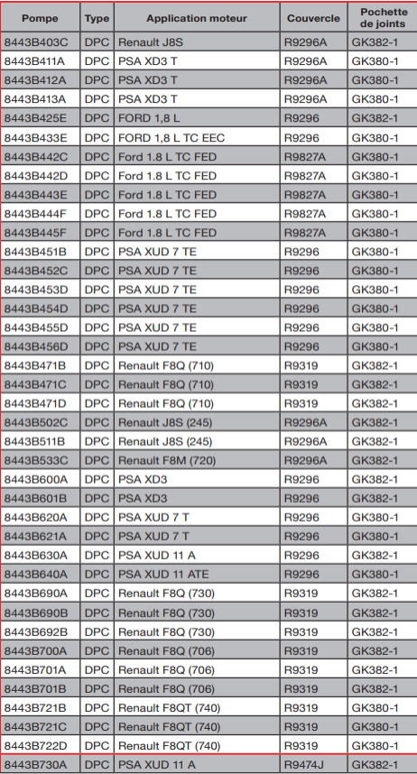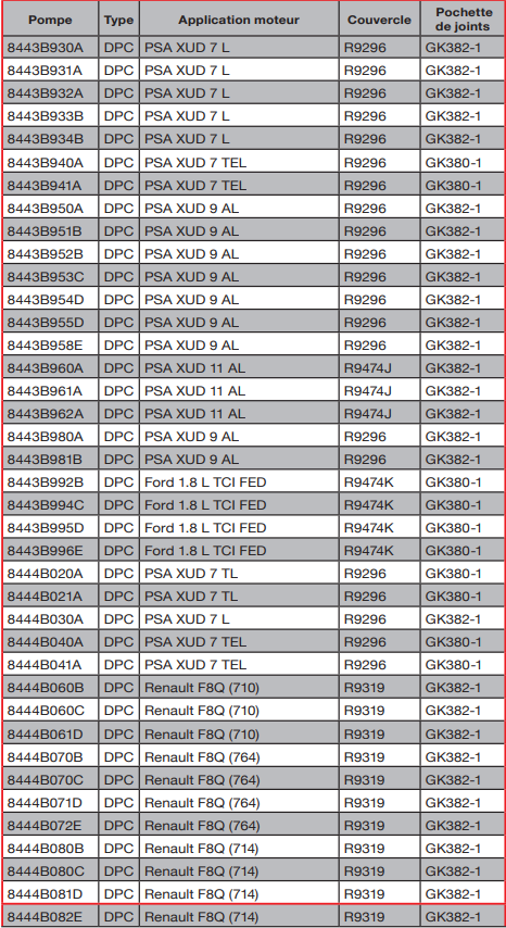 Merci de bien vérifier la référence du kit correspondant à votre pompe sur les tableaux